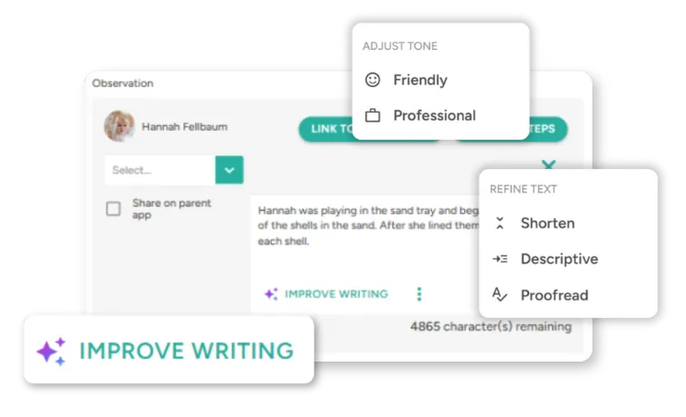 AI-enhanced observations and daily diary activities, designed to speed up yet another piece of your daily nursery admin.